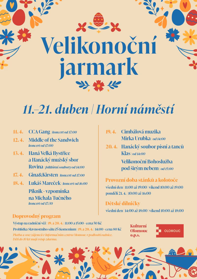 Tradiční oslavy jarních svátků budou letos na olomouckém Horním náměstí probíhat od 11. do 21. dubna.