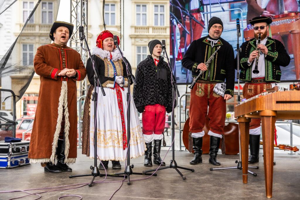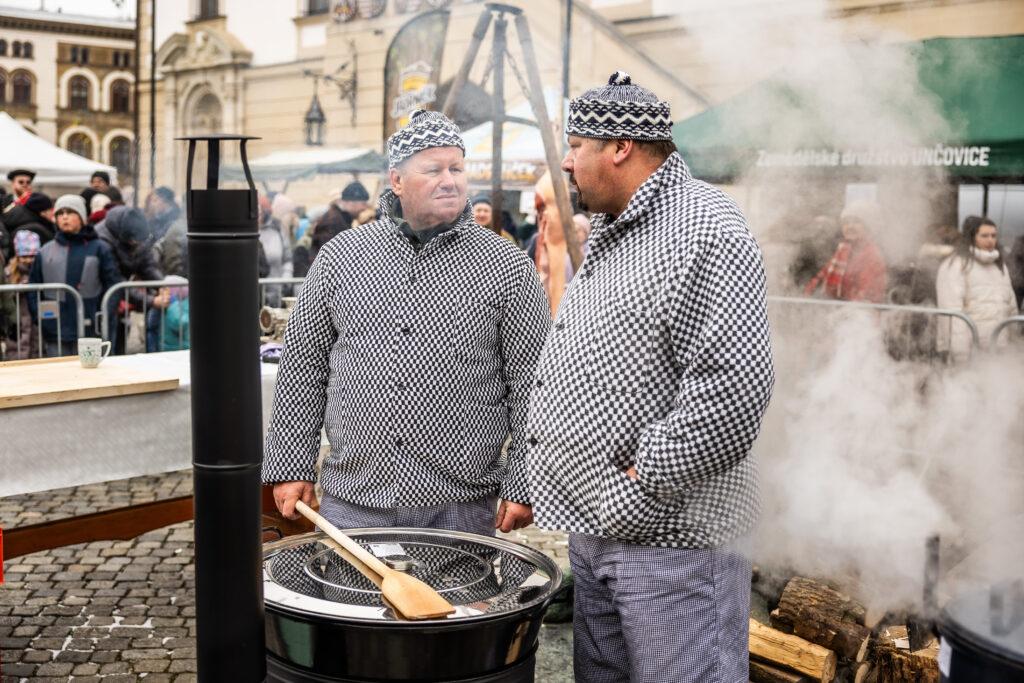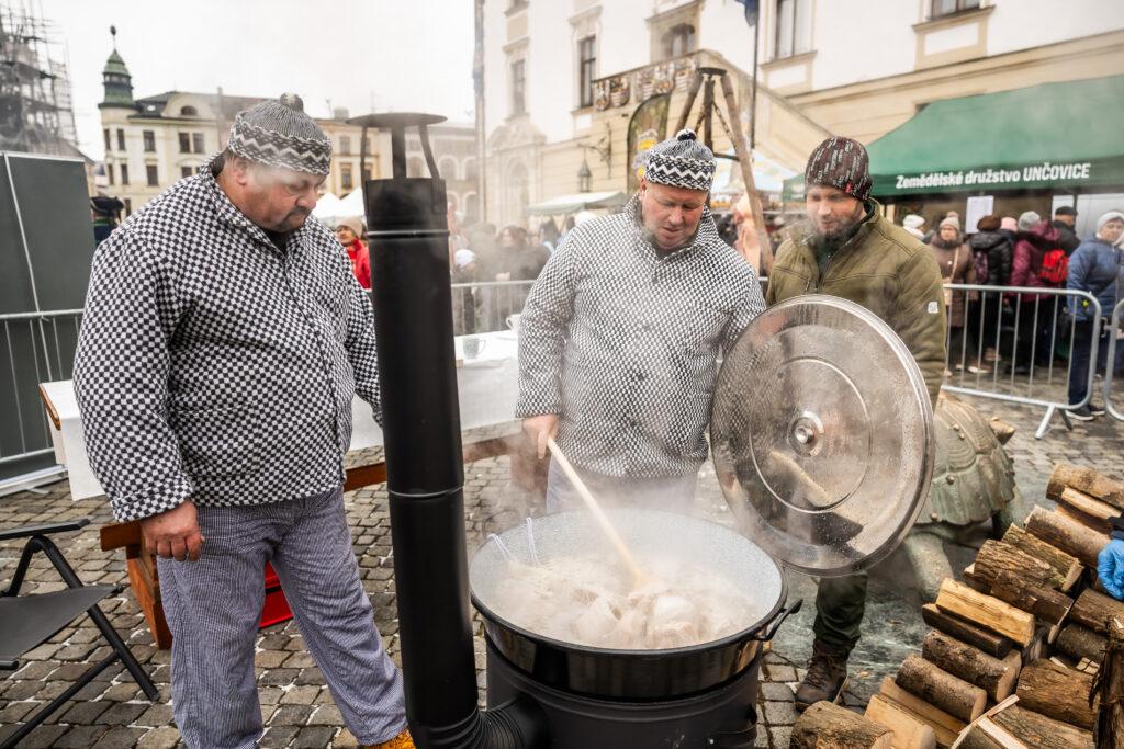 Olomoucké Horní náměstí bylo plné dobré nálady, tance a zpěvu. Samozřejmě nechyběly zabijačkové a masopustní speciality všeho druhu, jarmark s výtečnými regionálními produkty i zvířátka ze zoo, která se líbila hlavně dětem. Náměstí ozdobila tematická slaměná výzdoba a letos také překrásné ledové sochy!