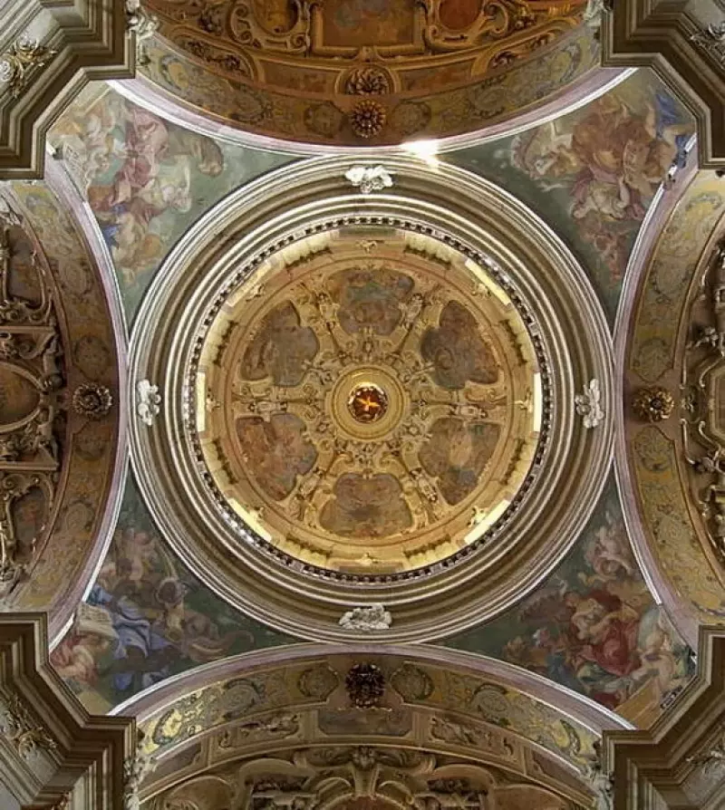 Numerous local and foreign painters, sculptors and plasterers participated in the interior decoration of the church. Jan Kryštof Handke painted allegories of the four continents in the pendentives of the dome. Saint Augustine, one of Handke’s finest works, is placed in one of the side chapels. Besides the painting of Saint Joseph by Tobias Pock, one should also mention the altar painting by the Venice oriented Johann Spillenberg on the main altar. The sculptors Joseph Winterhalter, Georg Anton Heinz and Michael Zürn also contributed a great deal to the overall looks of the interior. This monumental church was promoted by Pope John Paul II. to Minor Basilica in May 1995.