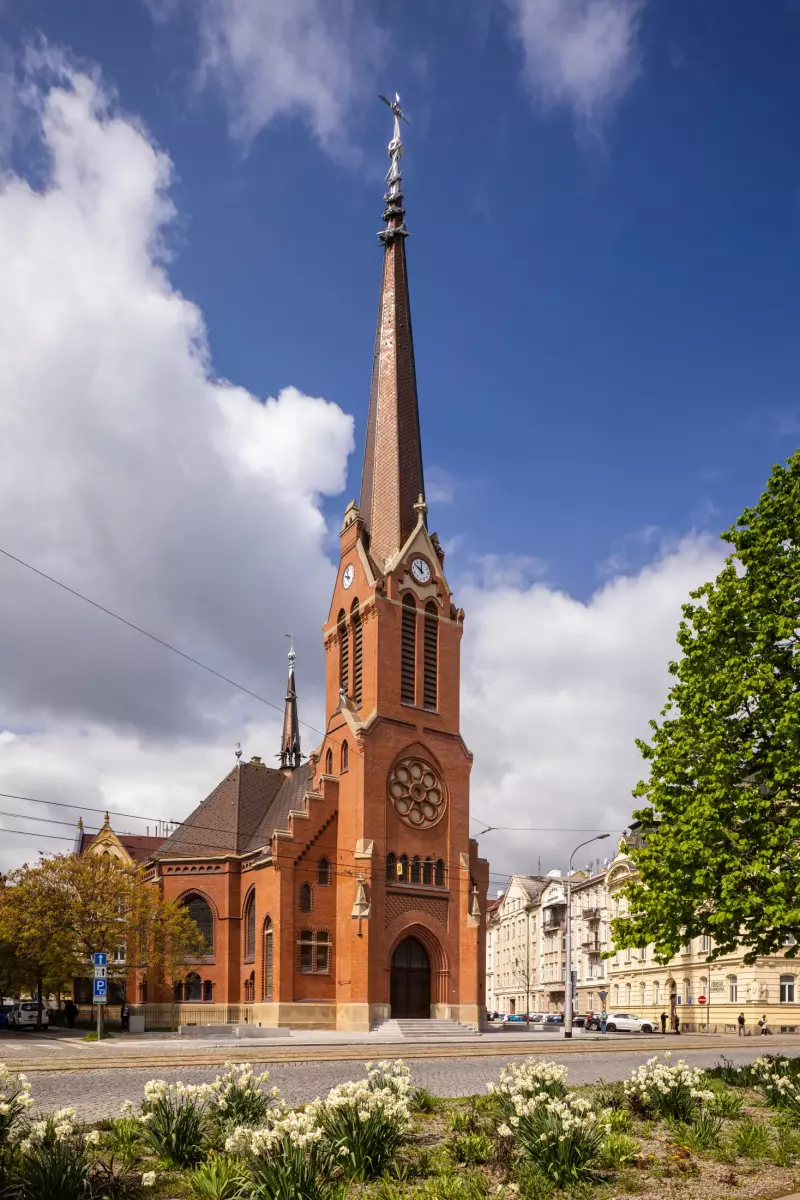 Červený kostel nechali na počátku 20. století postavit olomoučtí němečtí evangelíci podle architektonického návrhu Maxe Löwa. Základní kámen stavby byl položen 16. května 1901, dokončen byl kostel o rok později. Užití červených cihel pro jeho stavbu, typických pro německou cihlovou gotiku, inspirovalo k používání názvu Červený kostel, který doslova zlidověl. Jeho dominantu tvoří 55 metrů vysoká věž.