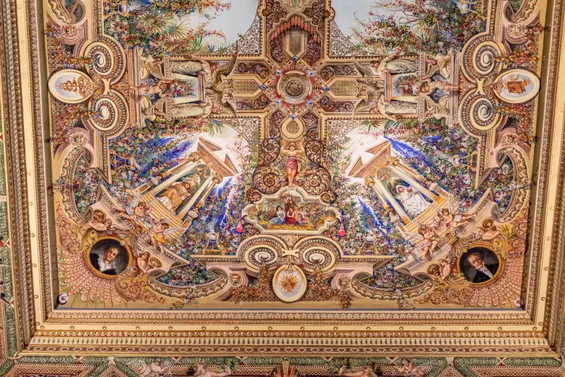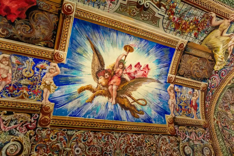 Obdobná malířská výzdoba v takovém rozsahu a provedení je unikátem, který nemá v tuzemsku srovnání. Hlavním autorem freskové výzdoby, na níž se podílelo více tvůrců, je pravděpodobně malíř José Hilber, a vznikla roku 1892.