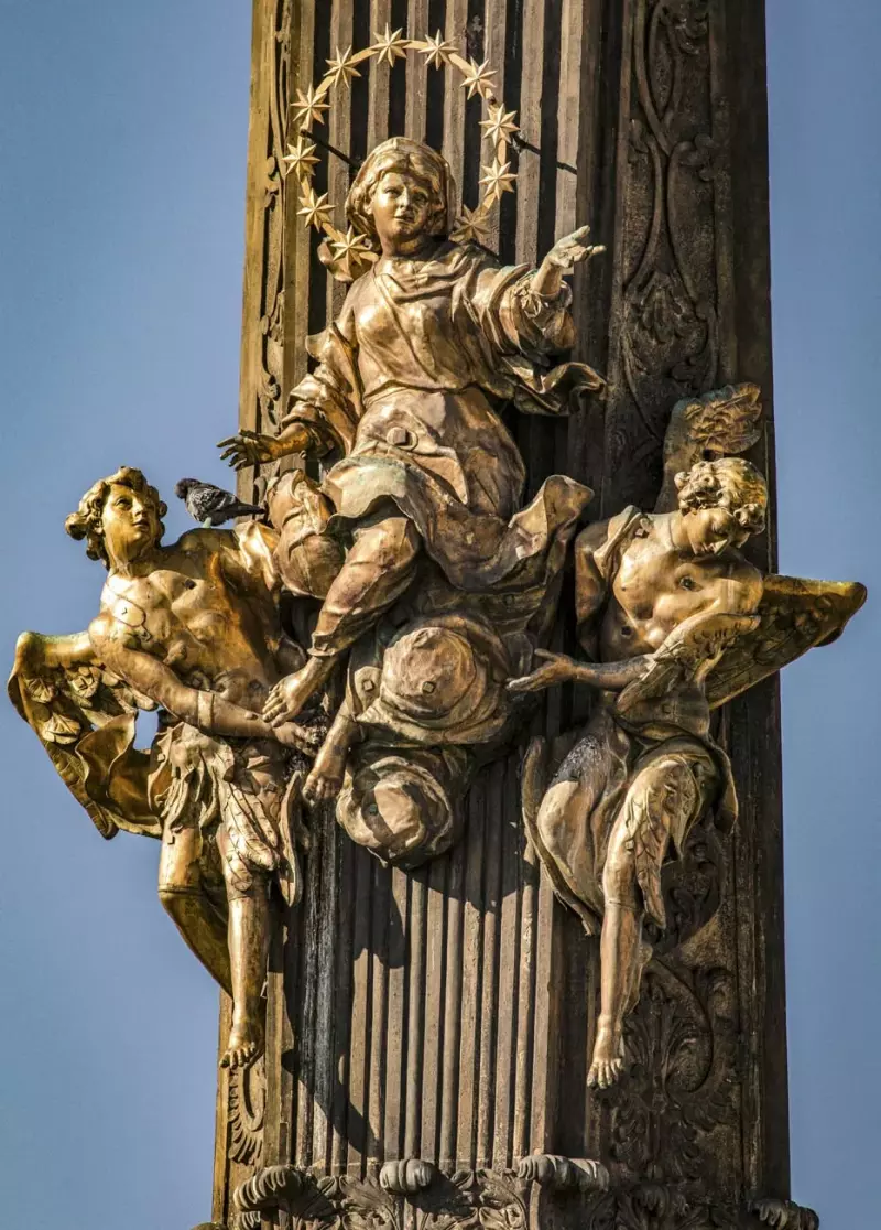 Do konce roku 2026 probíhá rozsáhlá obnova sloupu Nejsvětější Trojice.